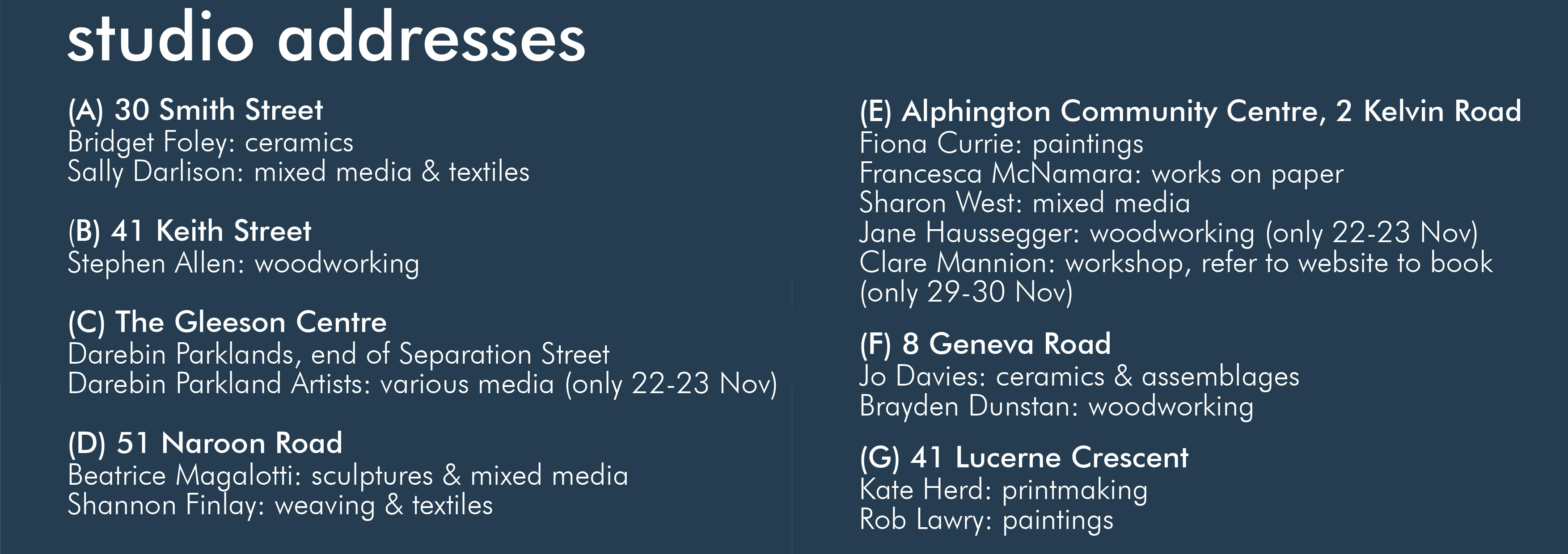 open studio weekend for local artists